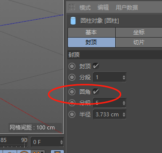 3、点击封顶——圆角;