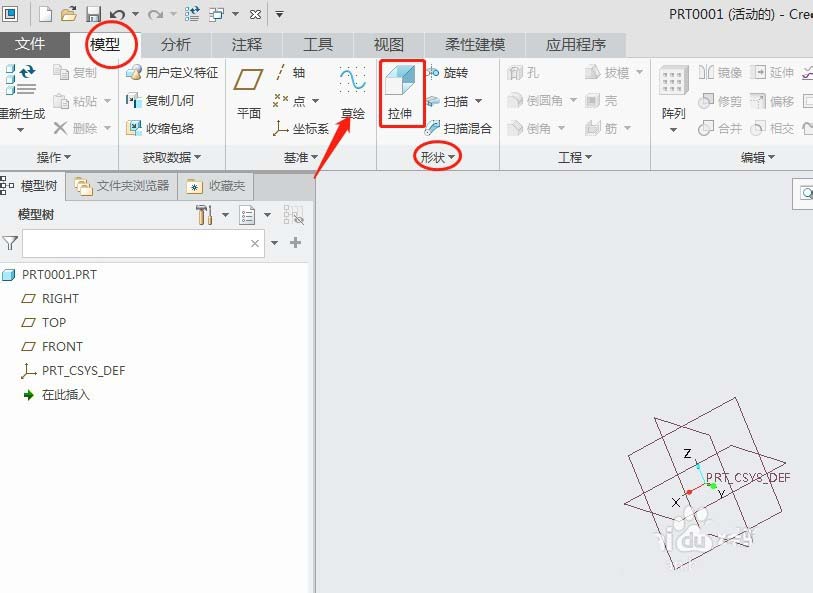proe5.0/creo3.0绘图软件怎么画拉伸平面?
