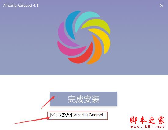 4、等待片刻即可完成安装,勾选“立即运行Amazing Carousel”,点击完成安装