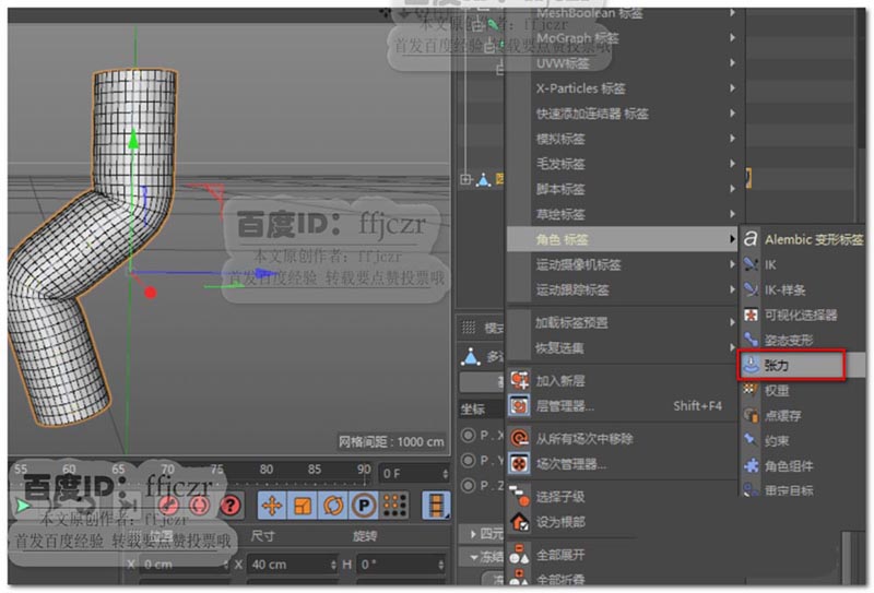 3、给模型添加一个角色标签中的张力。如图所示。