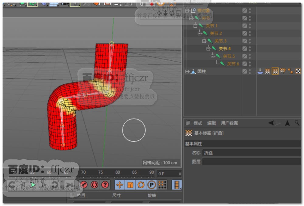 1、创建一个圆柱体,让骨骼关节来绑定圆柱体,使其可以通过关节来控制圆柱体的弯曲。其中的创建方法就不一一再述了。可以参考所给的引用经验。