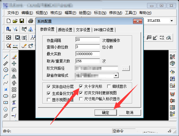 4、将大十字光标勾选,点击确定。