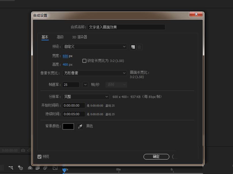 1、打开AE软件,命名文字进入画面效果,调整相应的参数。