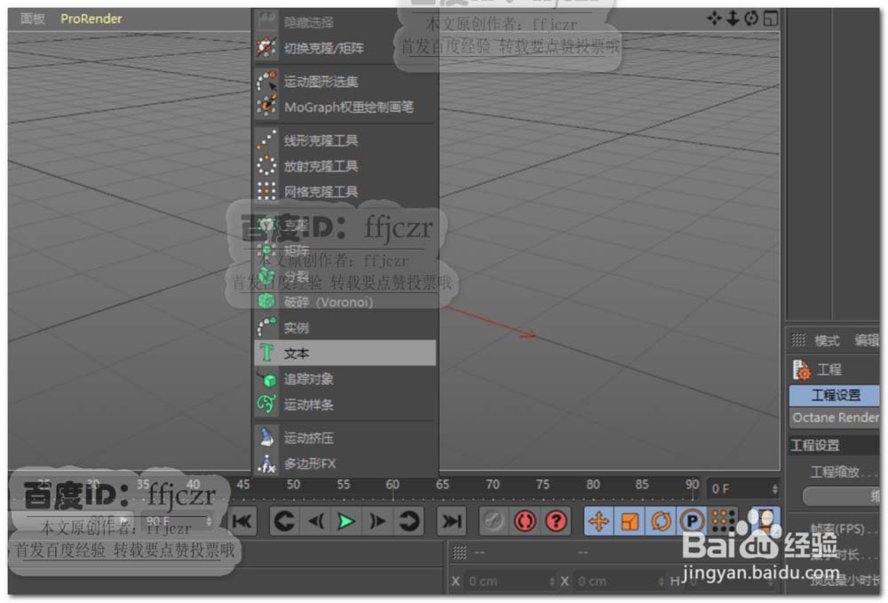 1、点开运动图形菜单,选择展开列表中的文本;用运动图形中的文本会比参数样条中的文本更方便。