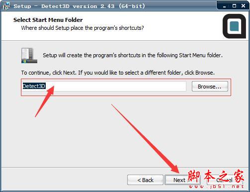 6、选择开始菜单,next(一般情况下默认即可)