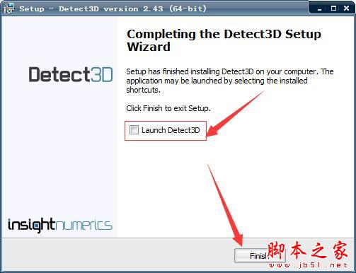 9、勾选掉Launch Detect3D,点击Finish,完成安装,但不运行软件