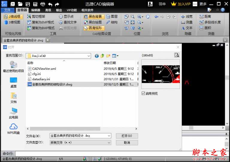 1.先启动迅捷CAD编辑器标准版,点 击【文件】-【打开】,在文件夹中找到并打开需要转换的CAD图纸。