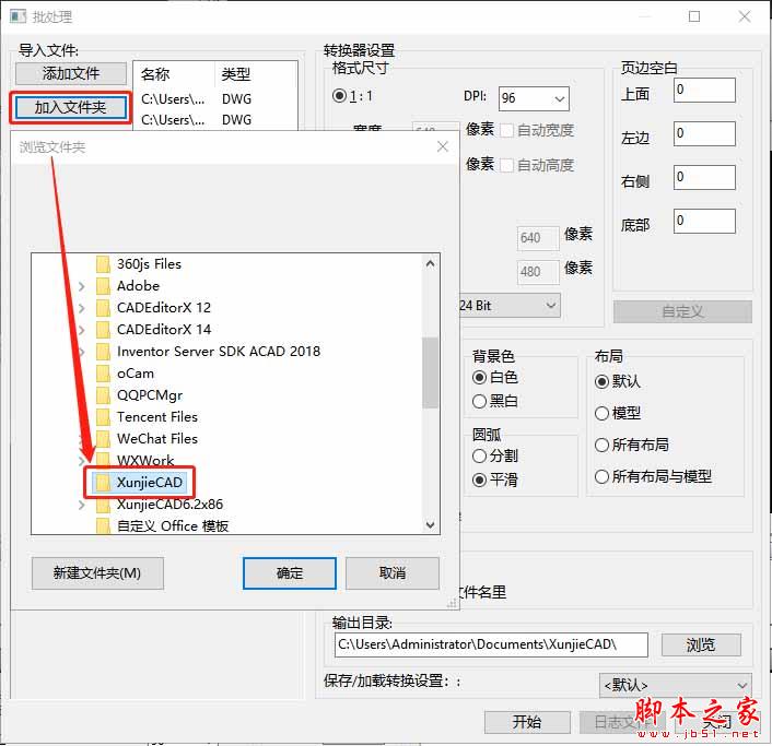 ②可以选择点 击【加入文件夹】,在弹出的【浏览文件夹】次弹窗中找到需要的CAD图纸文件夹添加【批处理】页面。