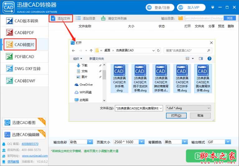 2.我们可以将CAD文件拖曳到软件中,也可以直接点 击【添加文件】或是【添加目录】选项图标,调用出【打开/选择文件夹】弹窗。在弹窗中选择需要转换的CAD图纸进行批量添加。