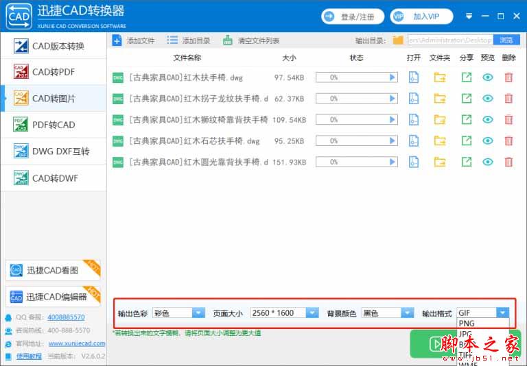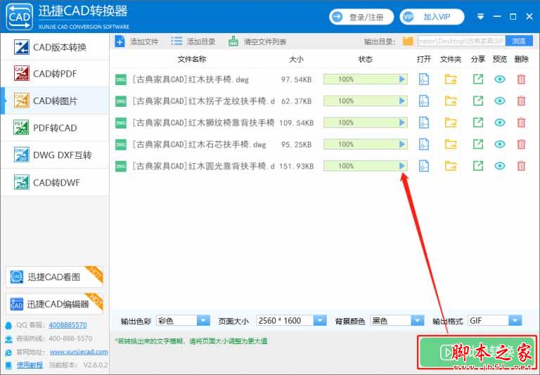 5.再之后点 击【批量转换】选项按钮,这时候可以看到批量添加的CAD图纸文件快 速地转换成GIF动图格式了。