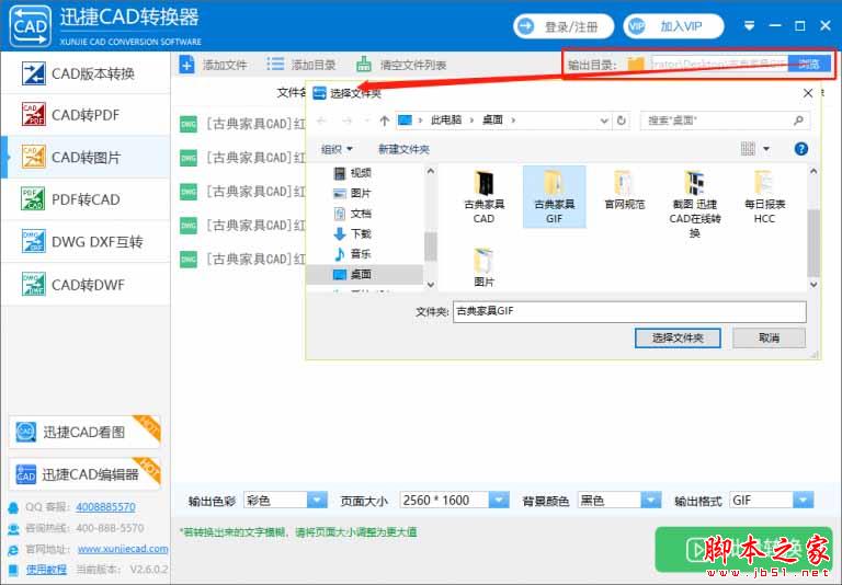 4.然后点 击在【输出目录】右侧的【浏览】按钮,调用出【选择文件夹】弹窗,在弹窗中我们选择合 适的文件夹保存转换后的GIF动图文件。