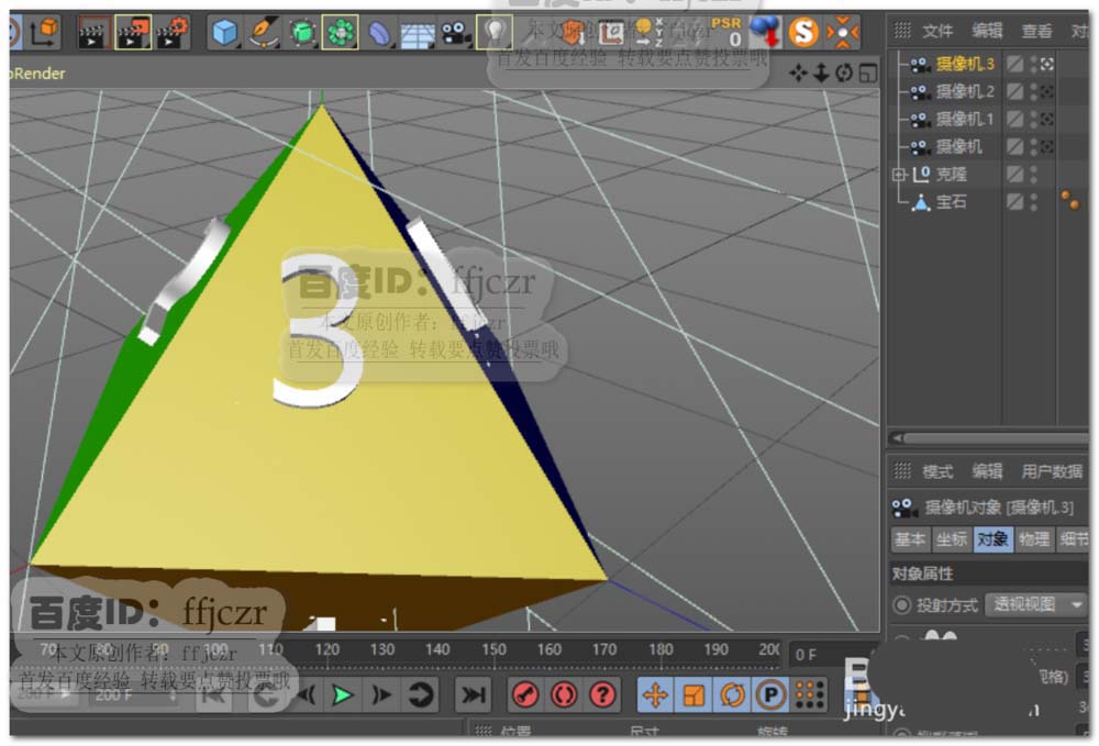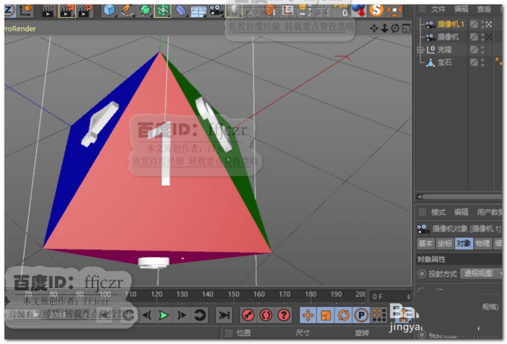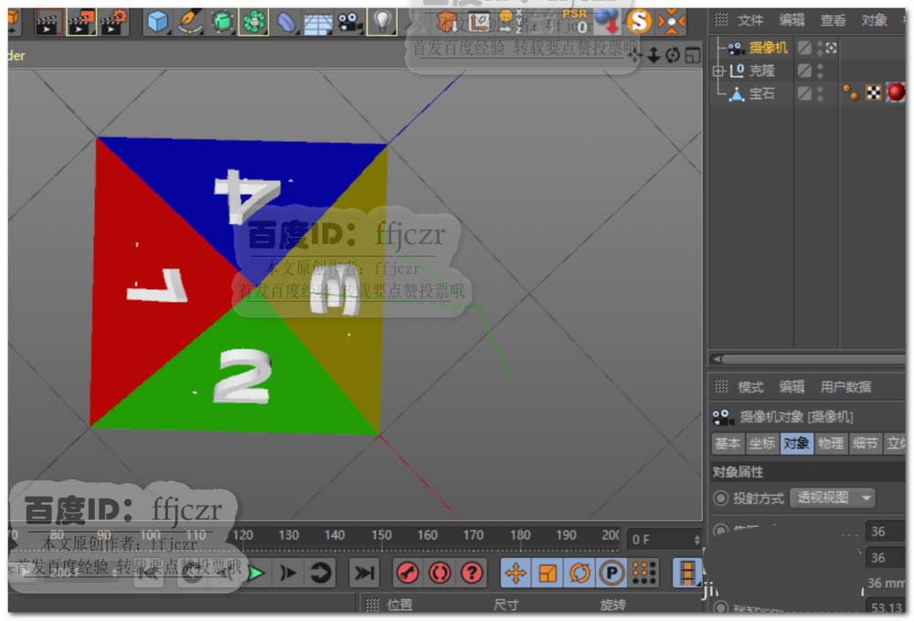 3、添加一个摄像机,在该摄像机的视角中移动到模型斜面上有1的文本。作为第二个摄像机的视角。