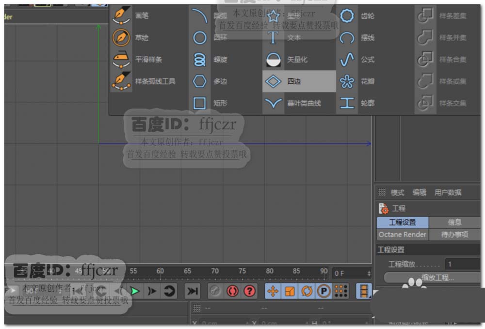 1、创建一个箭头模型。添加一个样条四边形,将其转为可编辑多边形,点模式中将左边的点与中间的二个点缩放到一条直线中,得到一个三角多边形。