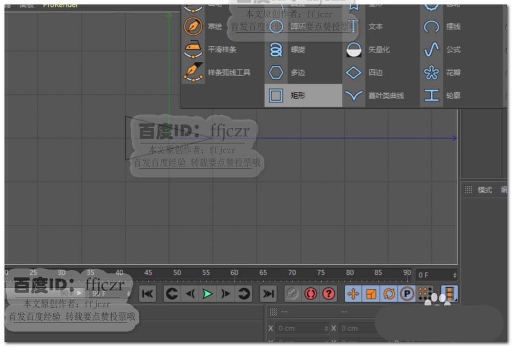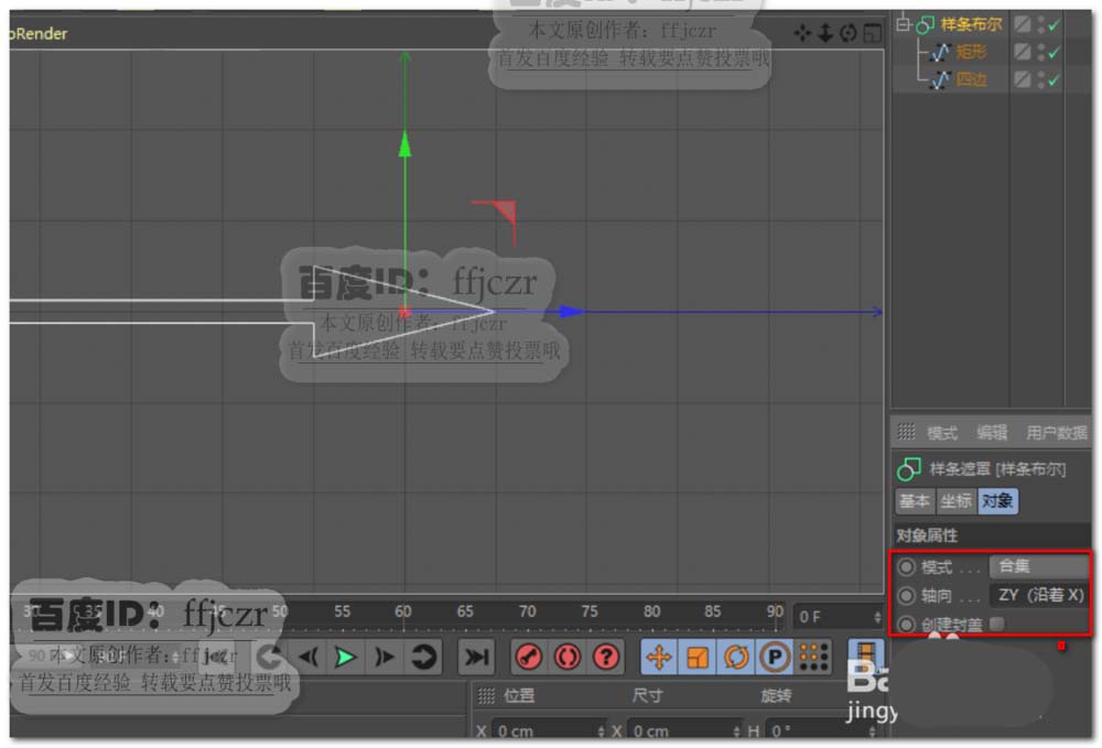 2、添加一个矩形,将其转为可编辑多边形,缩小Y轴上的边,使多边形形成箭柄部分;将二个多边菜略重叠一部分,选用样条布尔中的合并。得到箭头的轮廓线。