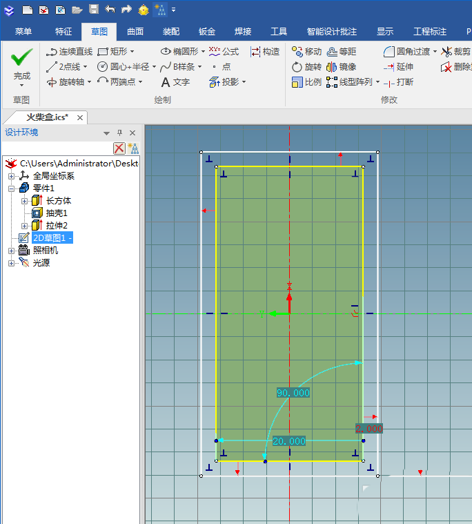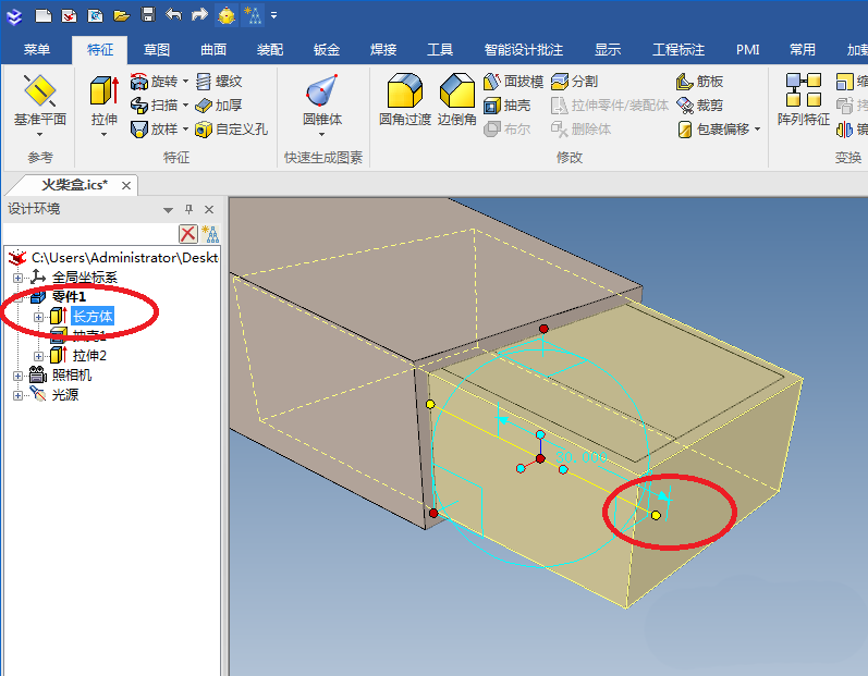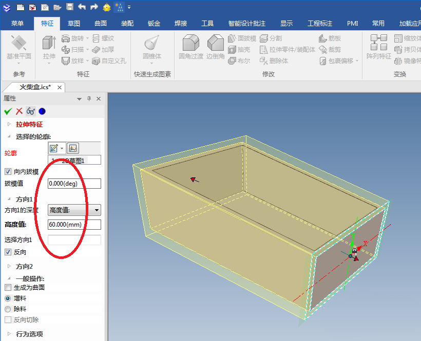 至此,火柴盒的主体盒子就设计完成了,下面开始设计火柴盒的壳子。