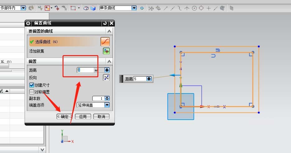 5、输入偏置距离,然后点击确认,就完成偏置了