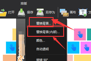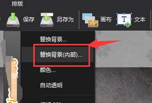 3、在打开下方菜单中,会找到替换背景以及替换内部背景选项