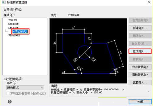2、这时候就会弹出【标注样式管理器】弹窗,我们找到选中的“标注文本”对应的当前标注样式,然后点击【修改】按钮。