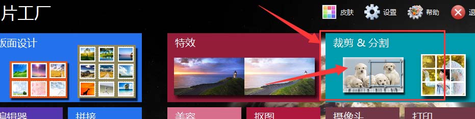 1、在图片工厂主栏中有个裁剪分割的命令,如图将其打开
