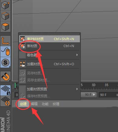 2、打开C4D软件,选择新建一个新的材质球,如图