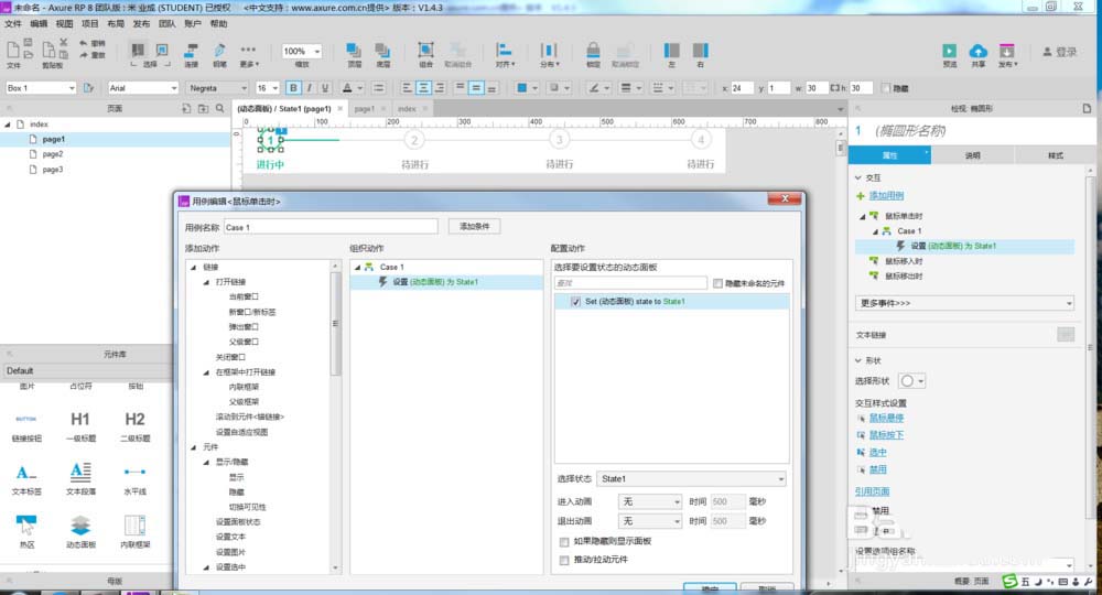 8、同样也给其他状态中的步骤条里的按钮做交互事件,如下图所示。