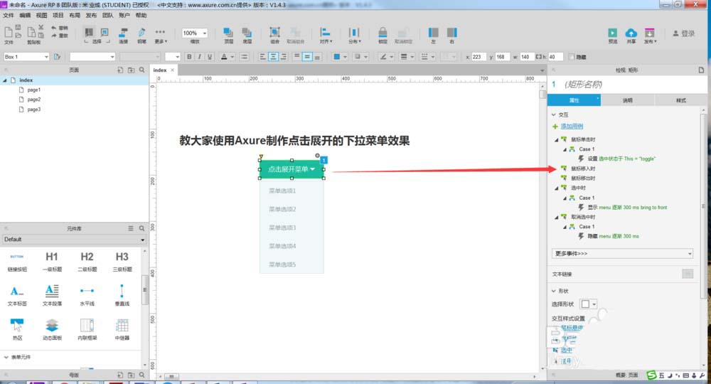 Axure制作点击展开的下拉菜单效果,该怎么制作呢?下面我们就来看看详细的教程。