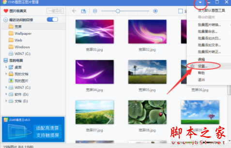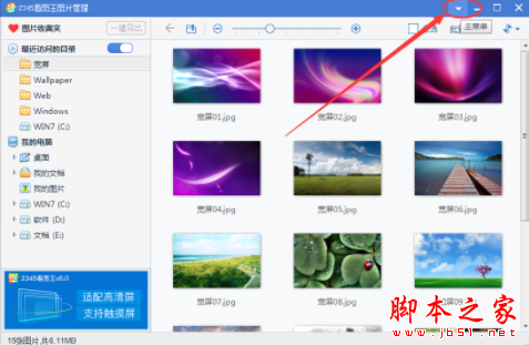 1.首先需要打开开2345看图王,然后在右上角点击一个倒三角的符号,这就是主菜单,使用的过程中遇到问题都可以先点击然后再进行从参数设置。
