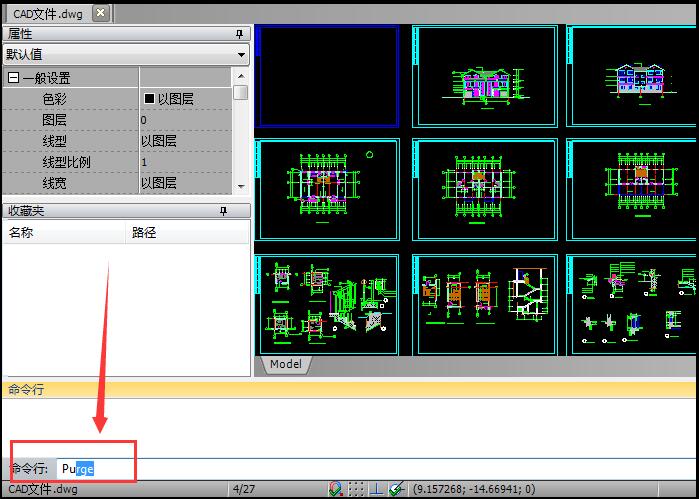 点 击软件左上方“文件”—“打开”按钮,打开需要清 除的较 大CAD图纸文件。待这张图纸打开后,在软件命令行输入“PU”命令,按回车键。