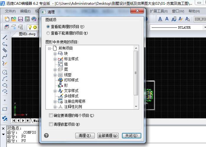 第三种:图纸对象过大,无用块或数据过多