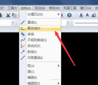 2、根据命令行提示的“按ENTER使用上一点/跟随(F)/<聚合线起点>:”,选择聚合线的起点,然后根据命令行提示选择需要绘制的内容,这里我们选择绘制圆弧,可以在菜单栏中点击【绘制圆弧】,或在命令行中输入A,按回车键。