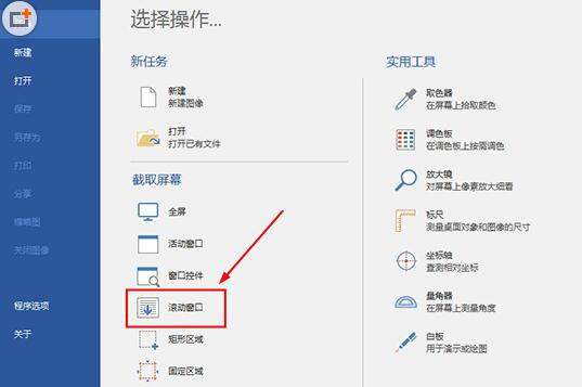 1、PicPick截图软件的滚动窗口截图功能闻名全球,很多用户专门下载它来帮助自己截取长屏,如果用户出现滚动截屏中间断了的现象,很大程度上是浏览器以及其他软件的设置问题所导致的,可不是PicPick在“暗箱操作”哦,小编这就从头到尾演示一遍,进入到PicPick截图软件的主界面,在选择操作的截取屏幕中找到“滚动窗口”选项,不过在点击它之前,最好是先将要截图的网页或长图打开,因为一旦开始点击此功能也就开始进行窗口滚动截图了,如图所示:
