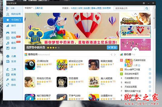 2、以上两种办法都能够打开应用宝库,接着在应用宝库中寻找自己需要的应用程序,不管是游戏、视频、音乐还是各种实用的工具,你都可以在这一款软件解决你的所有需求,如果你不确定自己需要哪种类型的应用,只需要看看“今日热点”即可查看当前最新、最火的软件应用;寻找到自己需要的应用之后,在应用旁点击其中的“添加”选项即可一键添加,用户还可以在我的应用中看到自己之前添加过的应用,不过如果是360安全桌面自带的应用,则不会在我的应用中显示,如下图所示: