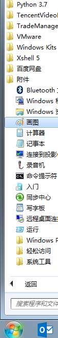 1、点击开始菜单栏,然后点击附件,在附件里面可以找到画图程序。