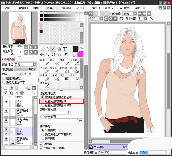 SAI2画图的时候,想要巧妙利用魔棒工具,快速选择一个在指定色差范围内的封闭区域,该怎么实现呢?下面我们就来看看详细的教程。