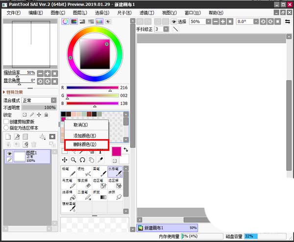 sai绘制图纸的时候,有时可能需要保存一些自己曾用过的颜色,以便在绘制其他作品时使用。该怎么保存用过的颜色,替换颜色和删除颜色呢?下面我们就来看看详细的教程。