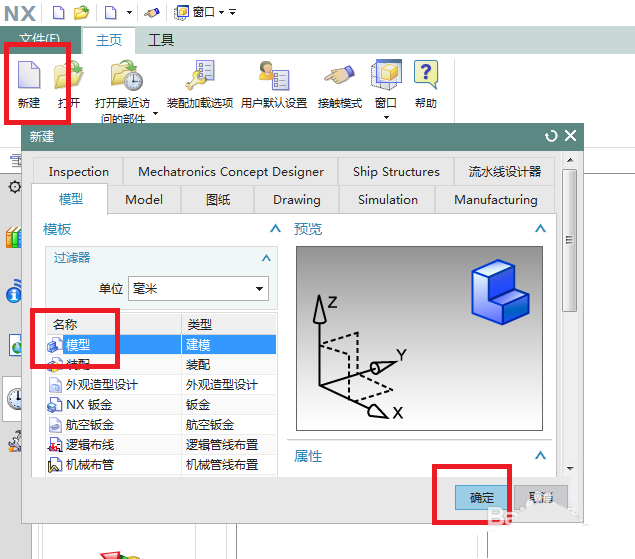 1、如下图所示,打开UG10.0软件,新建——模型——确定。