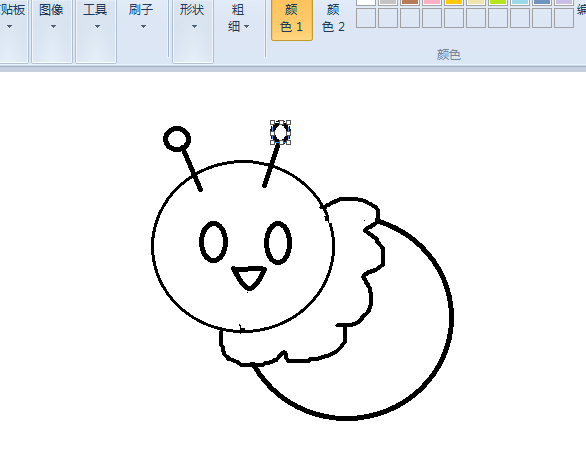 4、画上2个眼睛,嘴巴,两条触角,直线圆圈工具相互搭配;