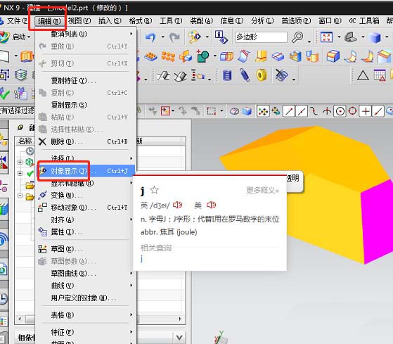 2、选择菜单栏上的编辑,然后选择对象显示。或者使用快捷键Ctrl+J