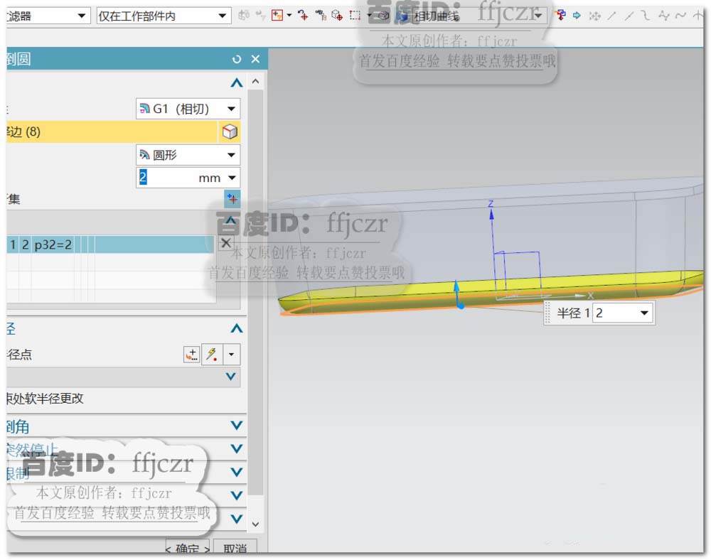 5、对模型底部外边倒半径为2的圆角。
