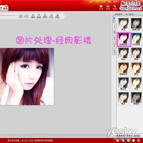 1.运行美图秀秀软件打开要处理的照片,一张照片未免还是显得有些单调,小编建议可以先给图片稍作处理,选择一键“图片处理”中的 “经典影楼” 特效,只要1秒钟图片就会变换风格了。