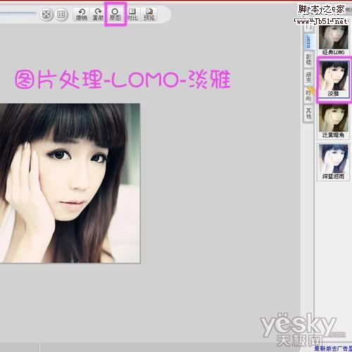 4.接下来还要再做几张图片备用,方法同上,处理完并保存好这些图片后,再来做下一步。单击“原图”图标,图片即可还原,然后再选择另一种特效风格,点击“图片处理-淡雅”功能,图片即可生产相应效果。