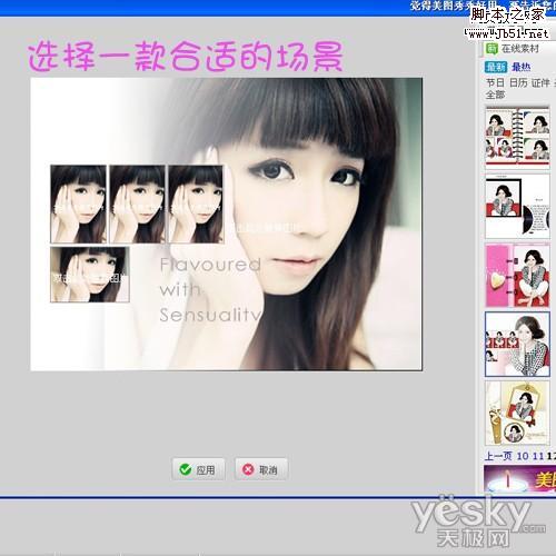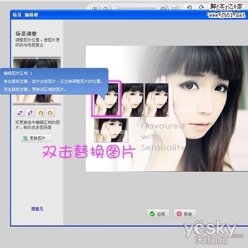 2.接着切换到“场景”功能,挑选一个喜欢的场景,调节图片显示位置后,点击“应用”。