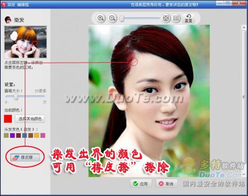 如果边缘有染发出界的情况,别着急,用“橡皮擦”进行擦除即可。如图5所示。