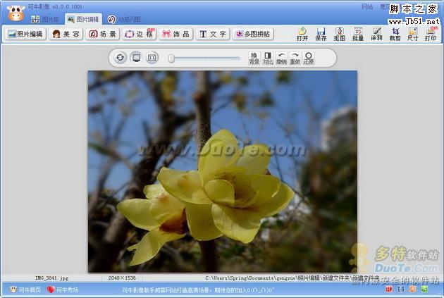 运行可牛影像,点击“打开一张图片”按钮,打开一张腊梅照片。如图01所示。