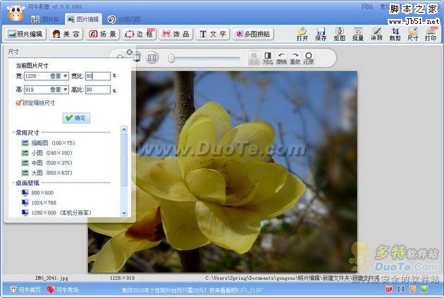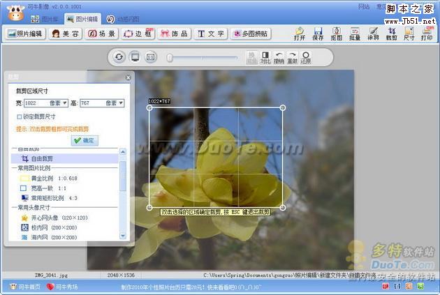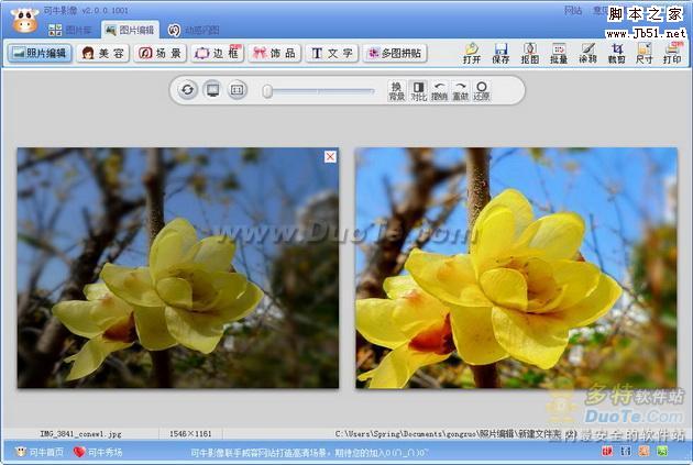 由于笔者在拍照时没有注意构图,导致这张腊梅周边显得杂乱,这就需要可牛影像的“裁剪”功能来弥补了,效果如图02所示。