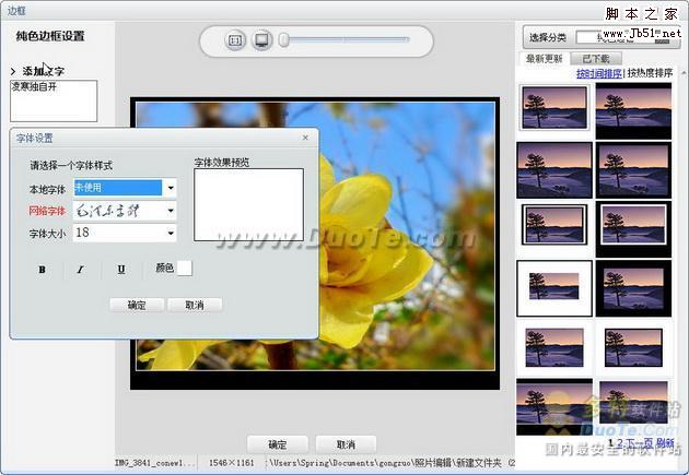 第七步: 在边框编辑窗的左边可以“添加文字”,还可以“添加exif信息”。同时,我们还可以进行字体设置,效果如图07所示。