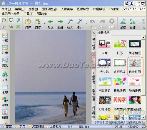 1.iSee软件打开图2,选择“右侧工具条”—相框娱乐—自由拼图。