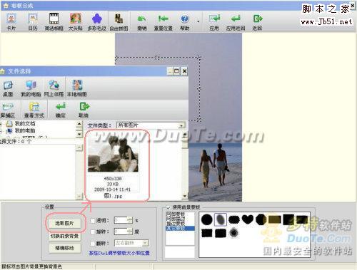 点击处理界面的左下方—选取图片,进入“文件选择”对话框,选择开始恋爱时的照片图2。