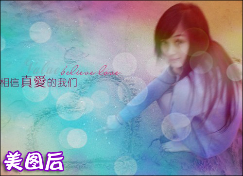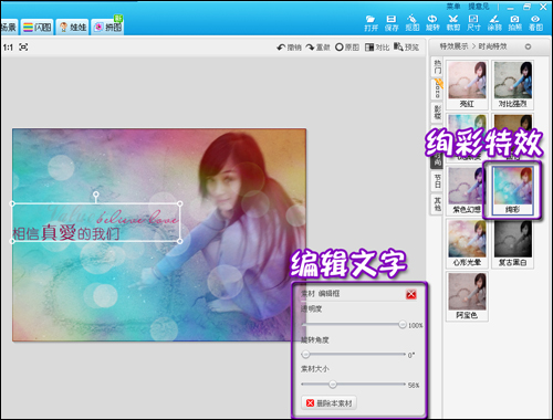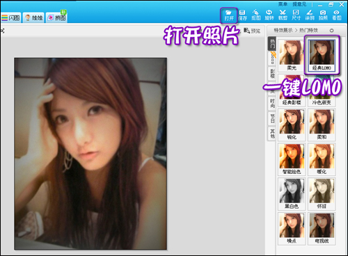 要做出这样的动态效果方法其实很简单,首先可以在美图秀秀中给照片加一些特效修饰。