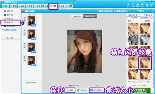 接着在闪图标签下添加合适的闪图样式即可。建议在制作闪图时适当缩小照片大小,这样既不影响美观,还可以让照片显得相对清晰。